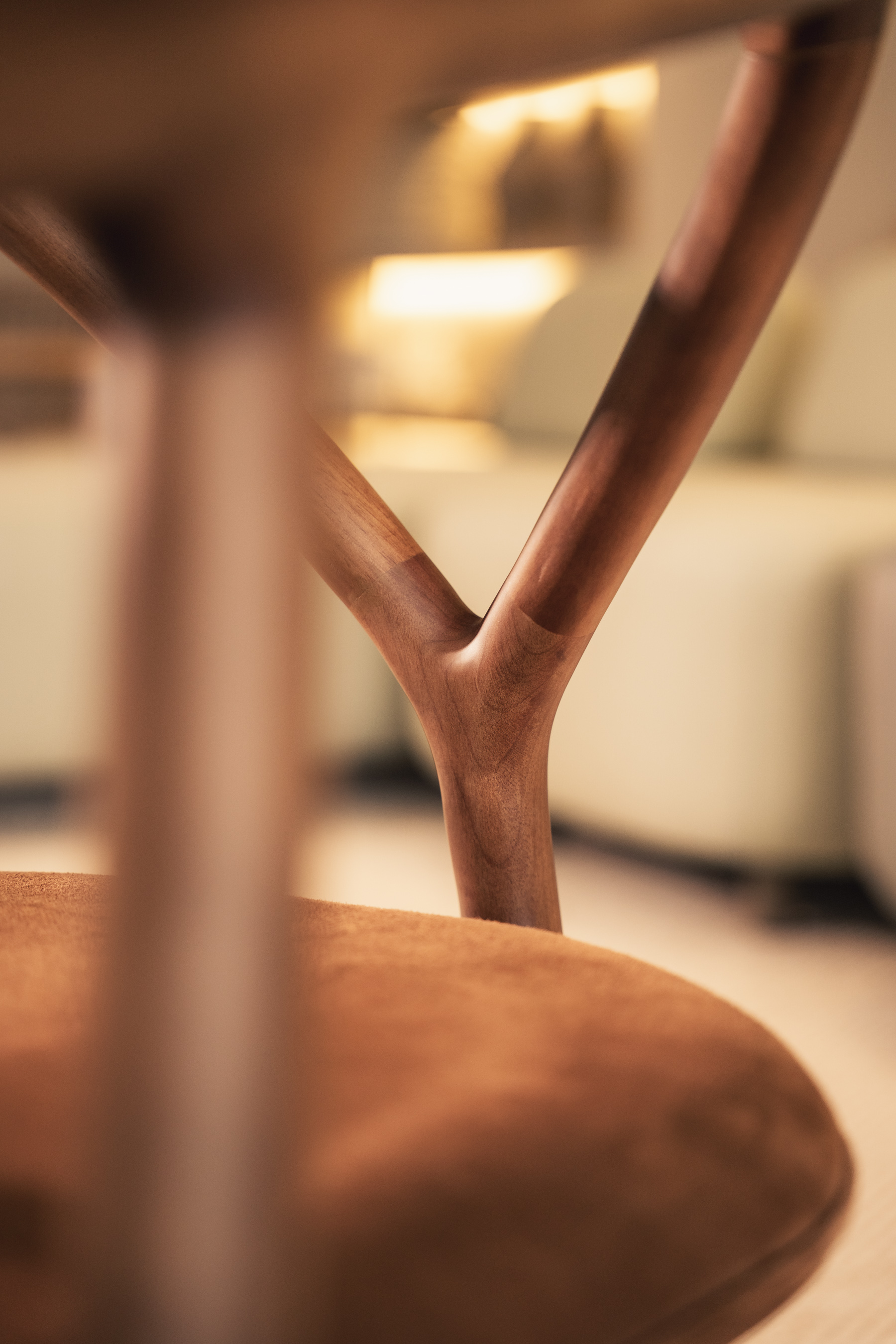 O primeiro contato com o aconchego é sempre tátil. Móveis com acabamentos suaves e curvas orgânicas despertam o instinto de acolhimento, trazendo naturalidade e conforto visual. Peças bem desenhadas, com proporções equilibradas, convidam ao relaxamento — como poltronas que abraçam, sofás amplos e mesas com linhas fluidas, capazes de transformar o gesto de sentar, apoiar ou descansar em uma experiência sensorial.