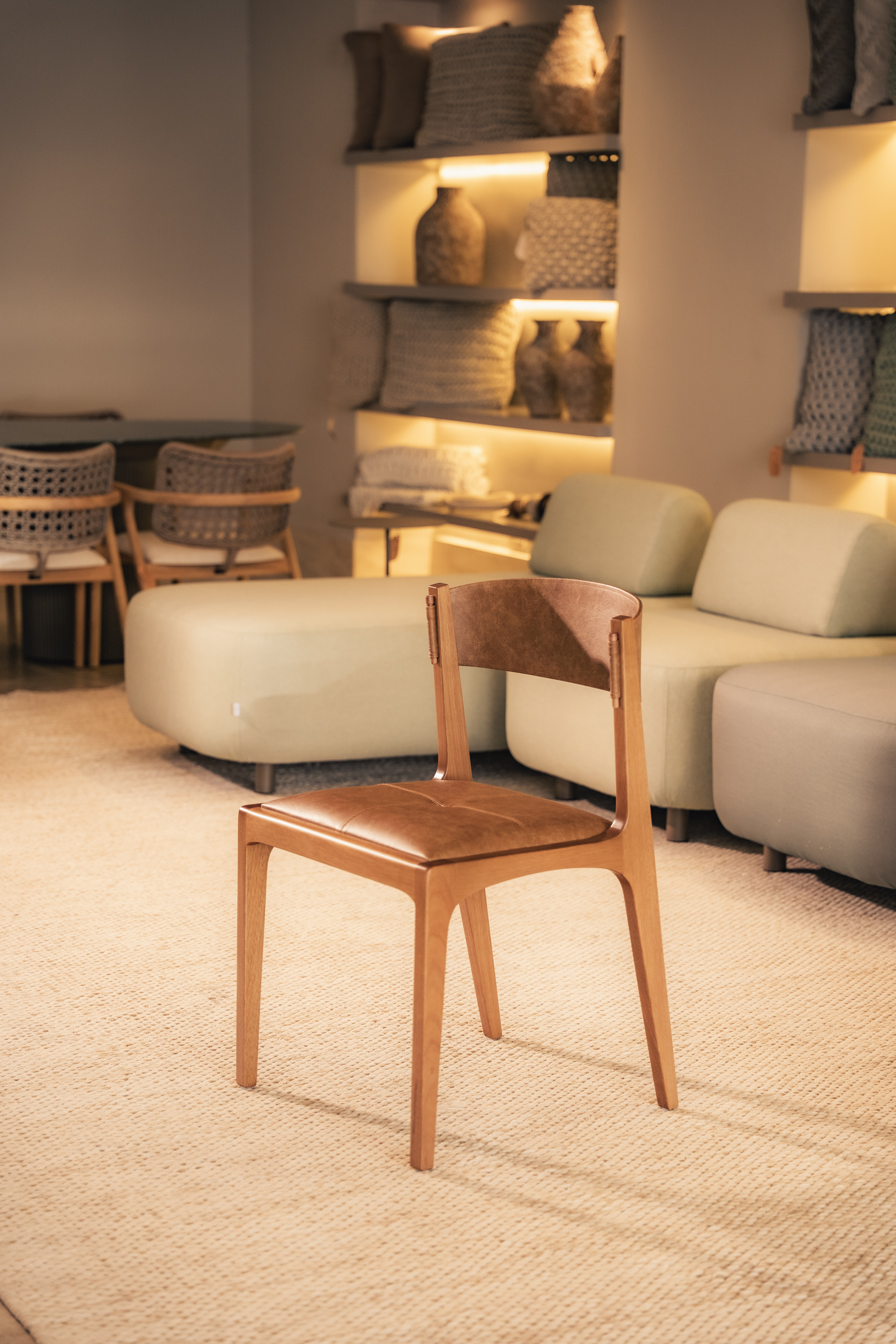 Cada composição presente no novo showroom expressa a curadoria cuidadosa da Guscio. São peças assinadas por designers que entendem o morar contemporâneo e traduzem em formas, tramas e volumes o equilíbrio entre estética e funcionalidade. Mais do que mobiliar, o showroom apresenta cenários de vida — experiências que se conectam a momentos e memórias.