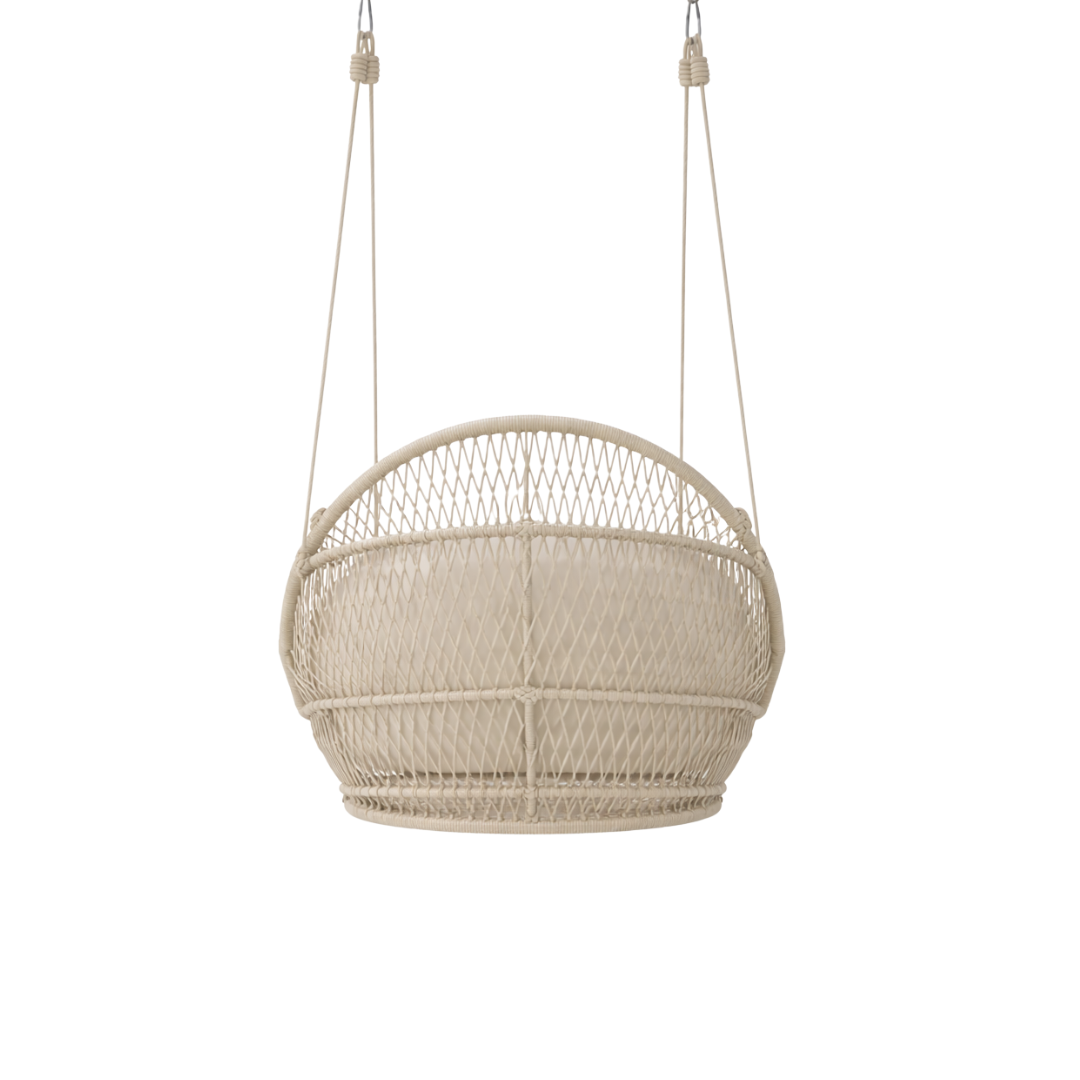 O balanço Suécia traduz leveza e elegância em uma peça que convida ao descanso com naturalidade. Seu desenho envolvente cria um espaço acolhedor, perfeito para momentos de pausa e contemplação. Uma presença sofisticada que valoriza ambientes externos ou internos com charme e conforto.