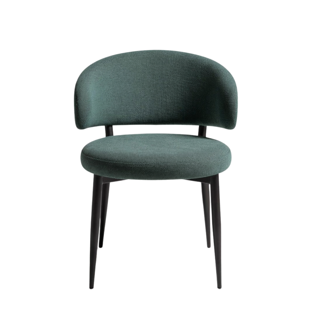 Curvas que acolhem e proporções equilibradas. A Cadeira Oliva une conforto e leveza no desenho, com encosto envolvente e assento generoso. Seus pés em aço carbono garantem resistência com elegância.