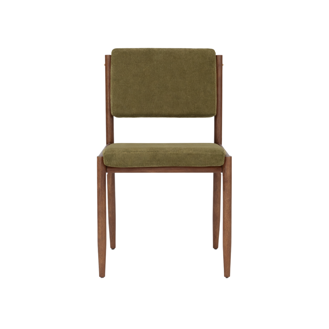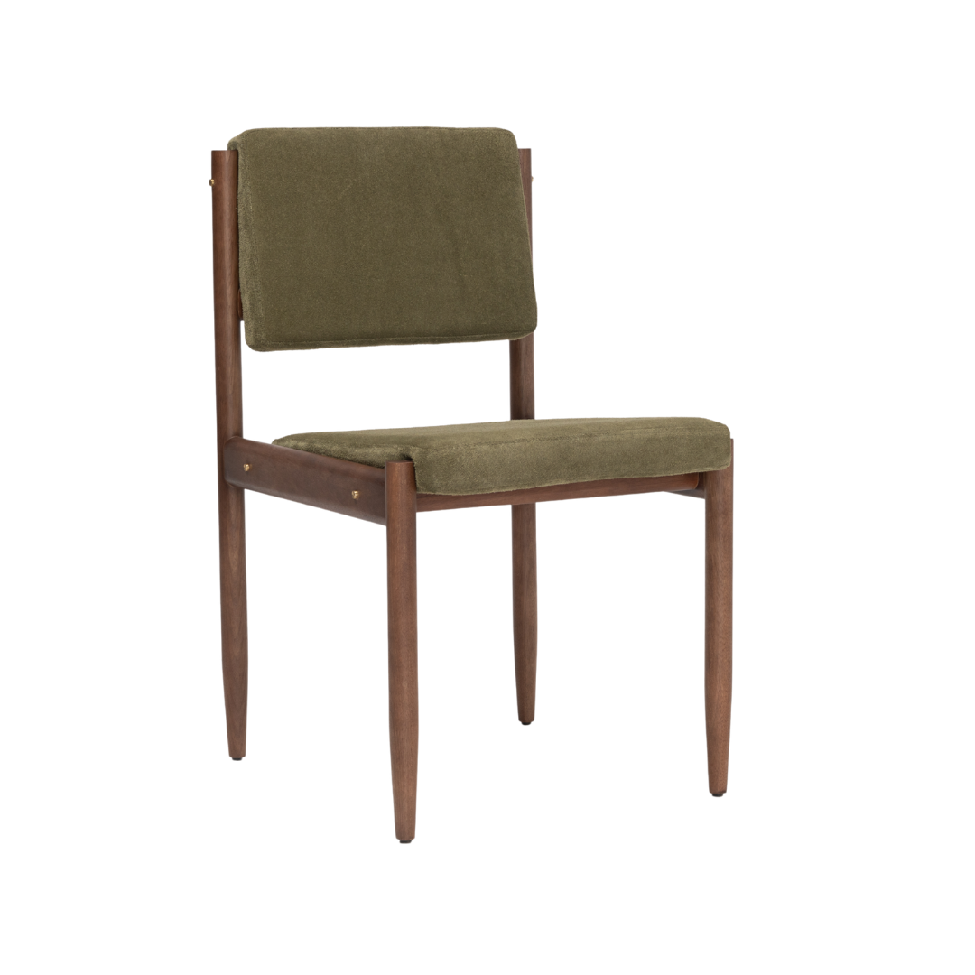 A Cadeira Pivot une simplicidade estrutural e riqueza de detalhes em uma peça atemporal. Seu nome nasce das inclinações sutis do assento e do encosto, que criam um leve dinamismo frente à geometria minimalista da estrutura.