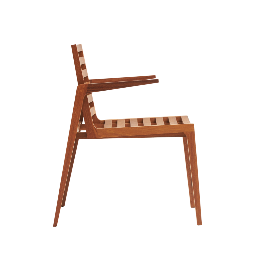 A Cadeira Ypê combina simplicidade e elegância com sua estrutura em madeira Cumaru, possui alta durabilidade e beleza natural. Seu design clean valoriza qualquer ambiente. Ideal para composições versáteis, tanto internas quanto externas.
