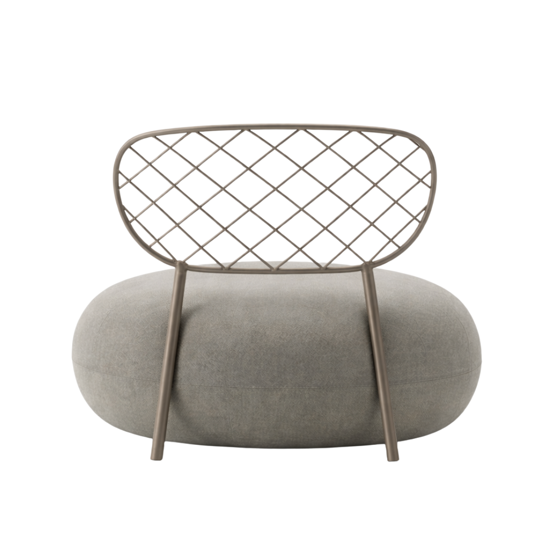 A Poltrona Giratória Pietra é a união entre imponência e leveza visual. Seu assento generoso, de formas arredondadas, cria uma base acolhedora que contrasta com o encosto vazado de desenho geométrico, trazendo personalidade e sofisticação à peça.